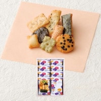 こんぶあられ/うす焼きごぼう/のり巻/胡麻三角/きざみ海苔煎/ざらつきあられ/花水木/あられバター |
